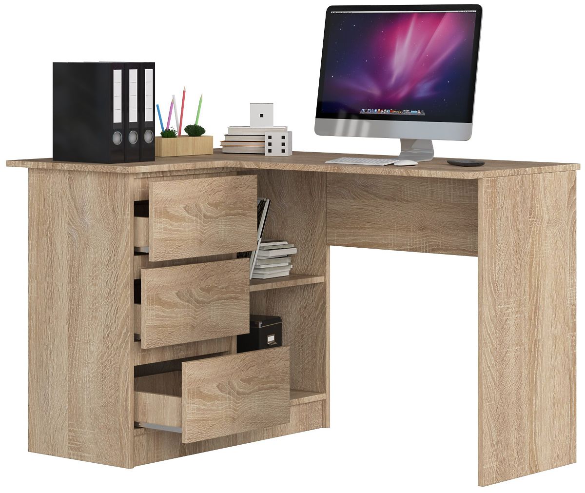 Sarokasztal Sonoma tölgy színben, sok tárolóhellyel. .. többet