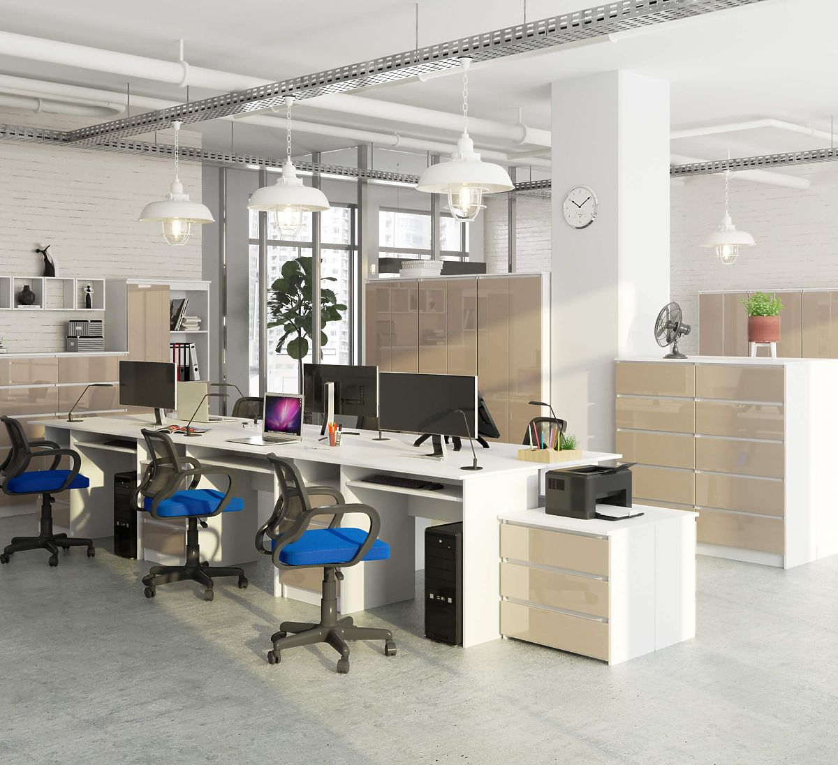 Szabadon álló íróasztal cappuccino magasfényű fiókokkal. .. többet