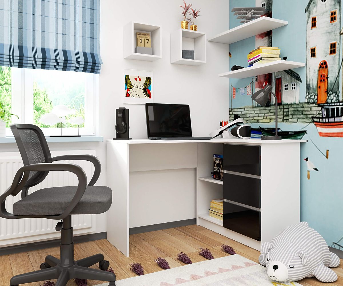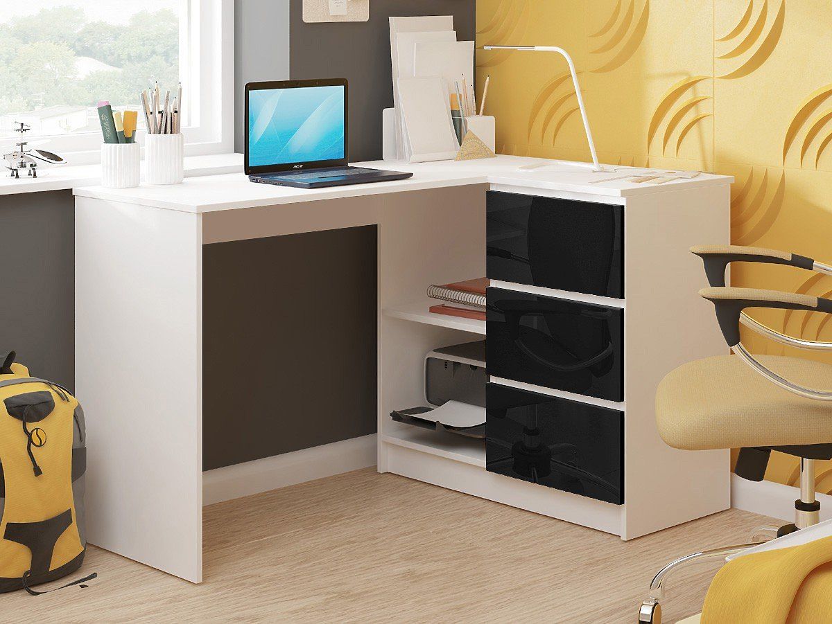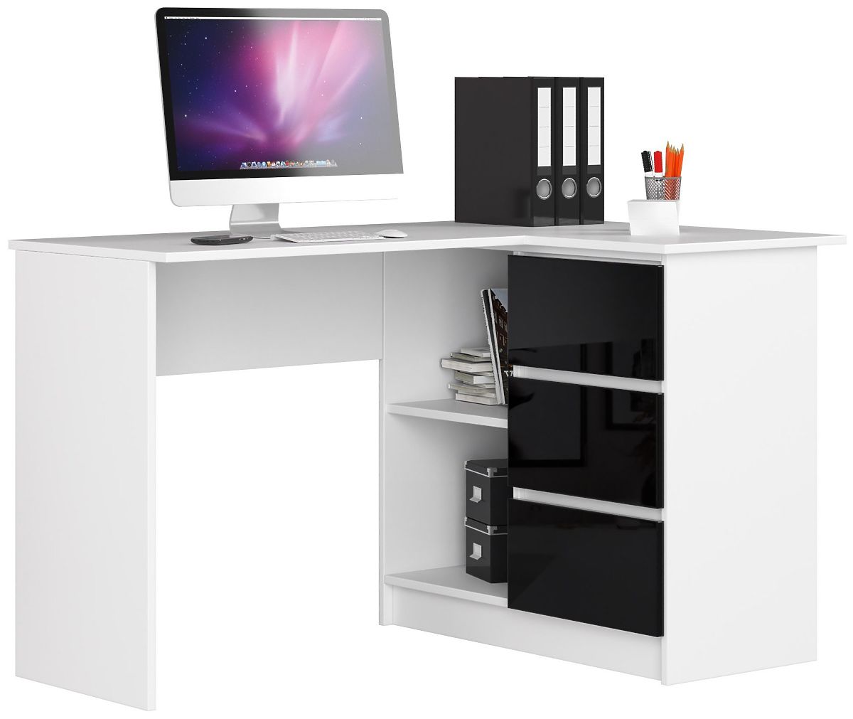 Lukafurniture.hu » bútor / írás asztalok / SAROK ÍRÓASZTAL B16 124 cm JOBB 3 FIÓK FEHÉR / FEKETE FÉNYES