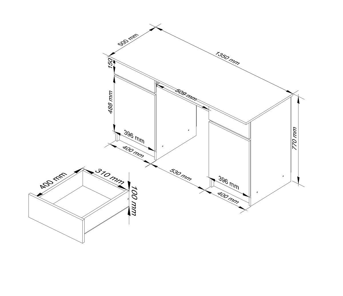 A 135 centiméter hosszú A5 számítógépasztal, amely két divatos színt (sonoma tölgy és fehér) kombinál, irodák, otthoni dolgozószobák, gyerek- vagy diákszobák berendezésére készült.