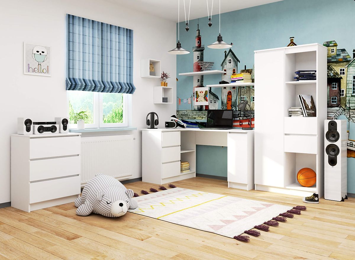 A balos sarokasztal érdekes megoldás sokak számára, akik számítógép előtt tanulnak vagy dolgoznak. A bútor méretei: 155 cm hosszú, 77 cm magas és 85 cm mély. Az anyag, amelyből készült, kiváló minőségű laminált lap, amely magas kopásállósággal rendelkezik. Az asztal élei ABS élzárással vannak ellátva, így ellenállóak a sérülésekkel szemben. A bútor három fiókkal rendelkezik (amelyek fém golyós csúszkákon mozognak), valamint polcokkal. Ezekben irodai kellékeket, dokumentumokat, irattartókat és akár elektronikai eszközöket is tárolhat. Az asztal tökéletesen megszervezi a munkaterületet vagy a tanulási teret. Kiválóan illik lakásba vagy irodába. Az asztal fehér színű. Egyszerűsége biztosítja, hogy tökéletesen illeszkedjen a minimalista és modern belső terekbe. A bútor nagy kényelmet nyújt a munkavégzés során, és biztosan sok éven át szolgál majd. Összeszerelése önállóan szükséges, amelyhez a mellékelt útmutató nyújt segítséget.