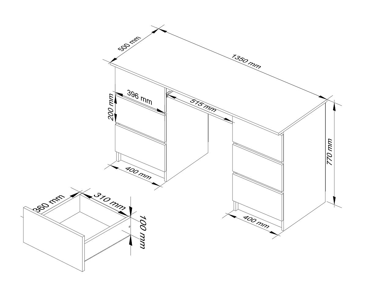 Bemutatjuk a kiváló minőségű A-11 Számítógépasztalt, amely nagy kényelmet biztosít a munkához, és elegendő helyet kínál iskolai kellékek vagy számítógépes kiegészítők, például lemezek, hordozható memóriák és egyéb kisebb eszközök tárolására. Az egész asztal kiváló minőségű anyagból készült, amely 16 mm vastag laminált lap. Az asztal méretei 135 × 70 × 55 cm, ami teljesen elegendő a kényelmes tanuláshoz, szórakozáshoz vagy munkához. Az asztallapon elfér egy asztali számítógép, laptop vagy más eszköz, például játékkonzol. Az asztal Sonoma tölgy színben kapható, és hat fiókkal, valamint billentyűzettartó polccal van felszerelve.