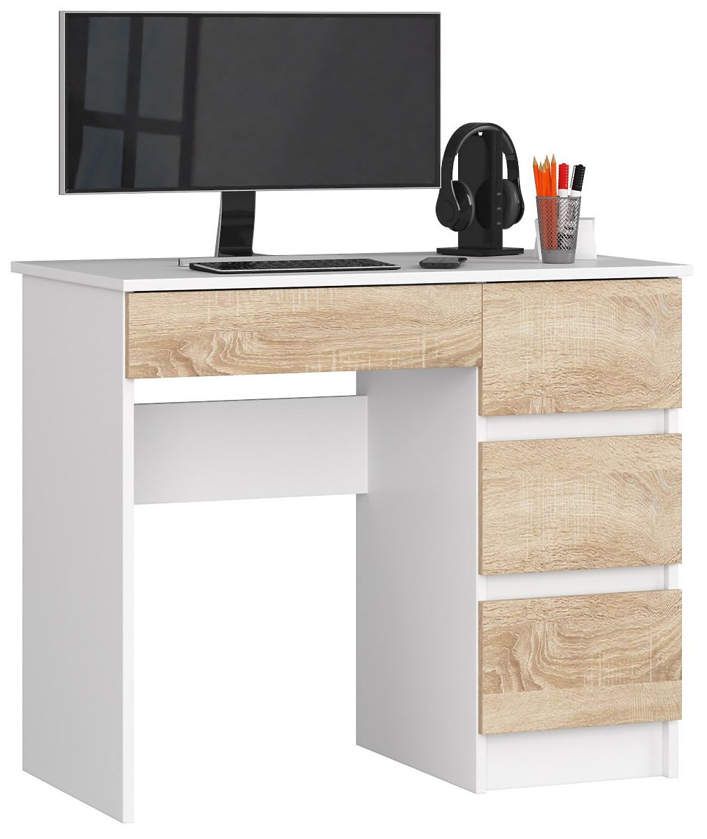 A számítógépasztalok a leggyakrabban keresett bútorok közé tartoznak. Nem csoda, hiszen sok időt töltünk a számítógép képernyője előtt. Ezért érdemes otthon kialakítani egy sarkot tanuláshoz vagy munkához. Ebben segíthet az A-7 70 cm-es számítógépasztal fehér színben, sonoma színű előlappal. Ez egy funkcionális és modern bútor, amely remekül illik a nappaliba, gyerekszobába és irodába.