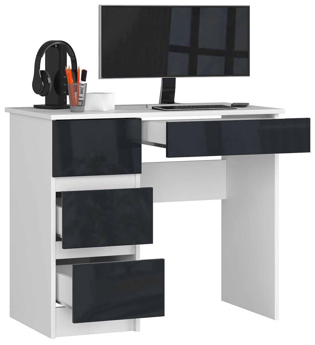 Négy fiókos, grafitszürke fényes íróasztal tinédzsereknek. .. többet