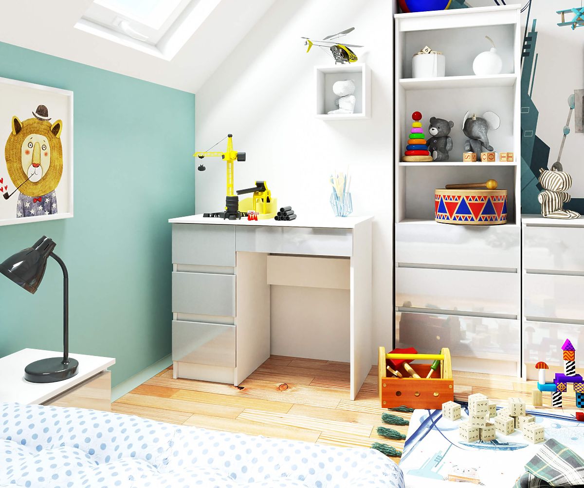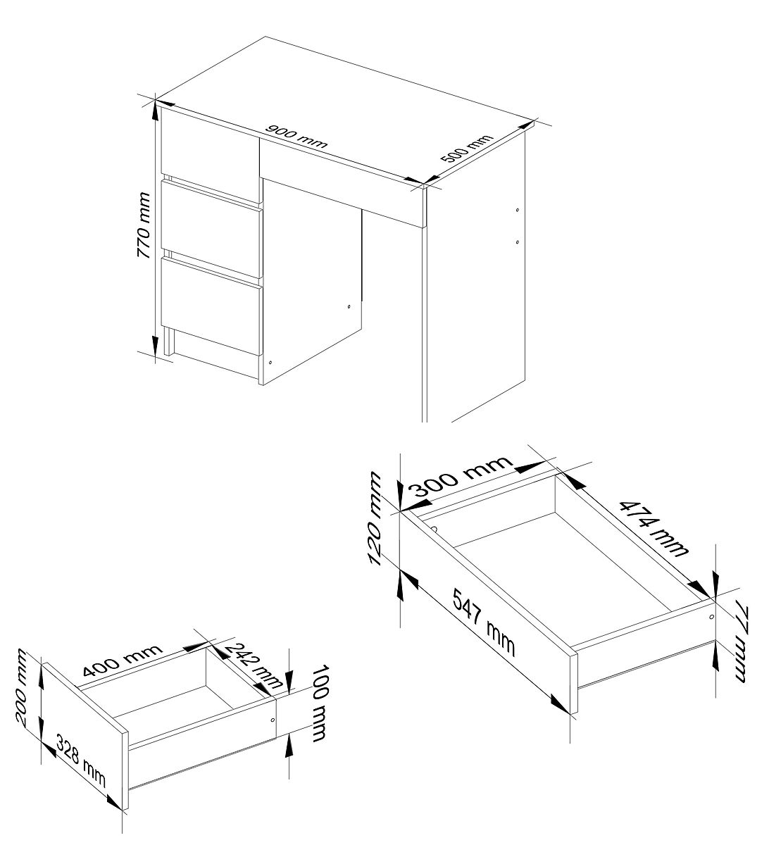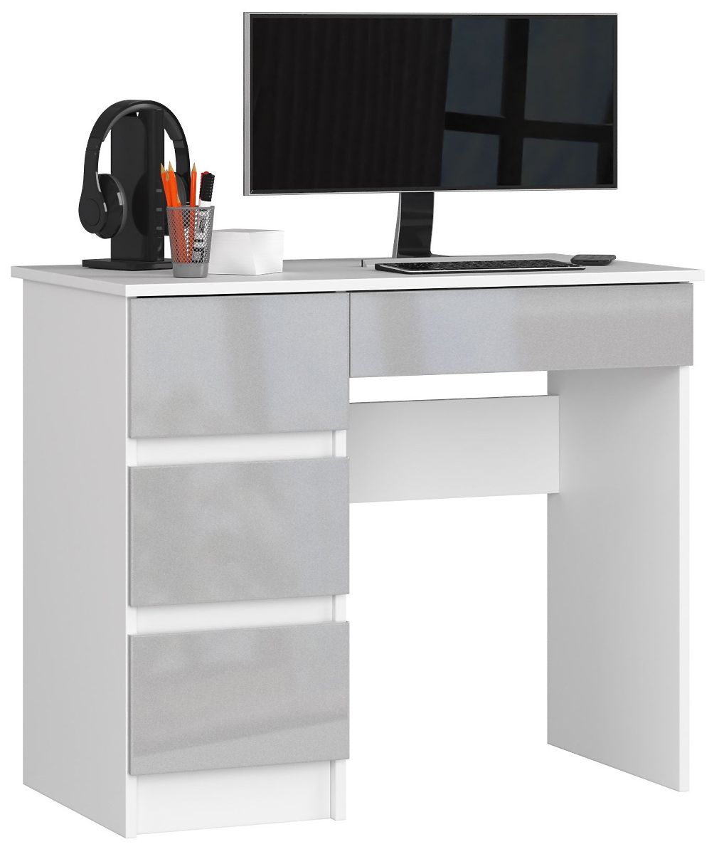 A megfelelő íróasztal kiválasztása kulcsfontosságú a hatékony és kényelmes tanuláshoz és munkához. Az A-7 számítógépasztal tökéletesen alkalmas ezekre a feladatokra! A bal oldalon található 3 tágas, 38,5 cm mély fiók kiválóan alkalmas jegyzetek vagy írószerek tárolására, míg a negyedik, az asztallap alatt kihúzható fiók ideális további felszerelések elhelyezésére. A fehér és a metál színek kombinációja lehetővé teszi, hogy a számítógépasztal irodában vagy színes gyerek- vagy ifjúsági szobában is elhelyezhető legyen, ahol finom kiegészítője lesz a belső térnek.