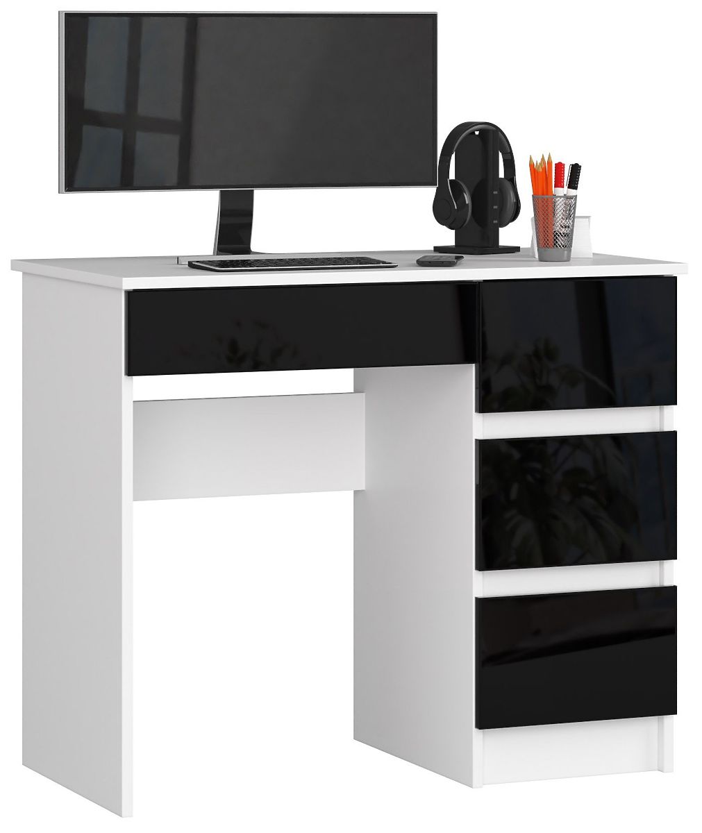 Lukafurniture.hu » bútor / írás asztalok / SZÁMÍTÓGÉPASZTAL A-7 90 cm JOBBOS PK FEHÉR / FEKETE FÉNYES