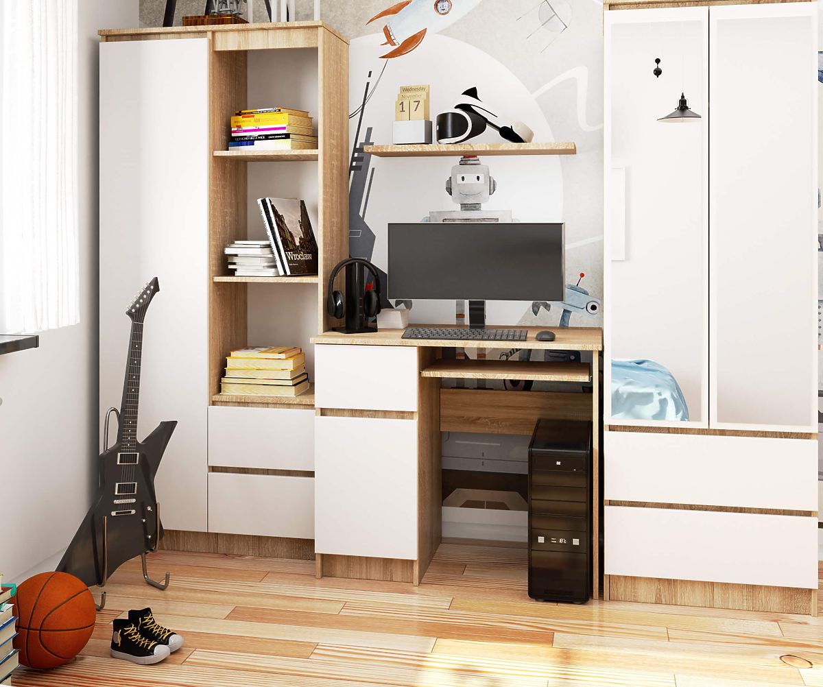 A Pixel asztal egy kis asztal, amely rengeteg helyet biztosít a legszükségesebb iskolai dolgok számára. Az ajtók mögött sok füzet és könyv elfér. Az asztal hossza 90 cm, és kiválóan illik kis és közepes méretű helyiségekbe.