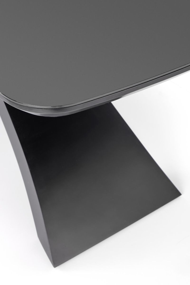 Kinyitható Silvestro étkezőasztal sötétszürke üveglappal és fekete MDF lábakkal. .. többet