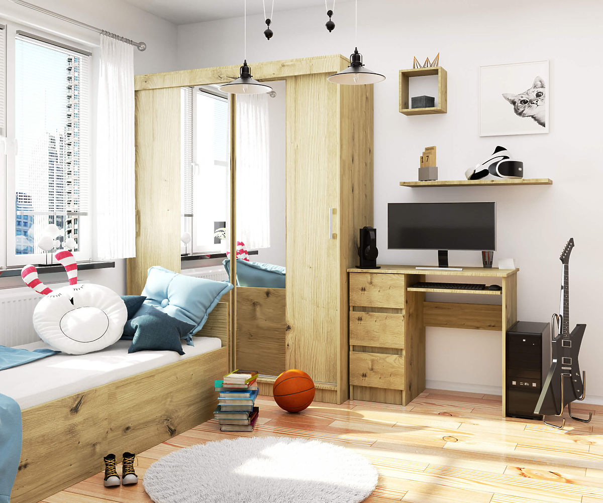 Az A-6 artisan tölgy számítógépasztal kiválóan illik gyerek- és ifjúsági szobába, de dolgozószobába is. Kis méretei lehetővé teszik a tanulási vagy otthoni munkaterület kialakítását a hálószobában vagy nappaliban is. Az asztal ideális kis, hangulatos irodákba is. Az artisan tölgy színének köszönhetően a bútor illik mind a modern, mind a klasszikus bútor elemekhez.