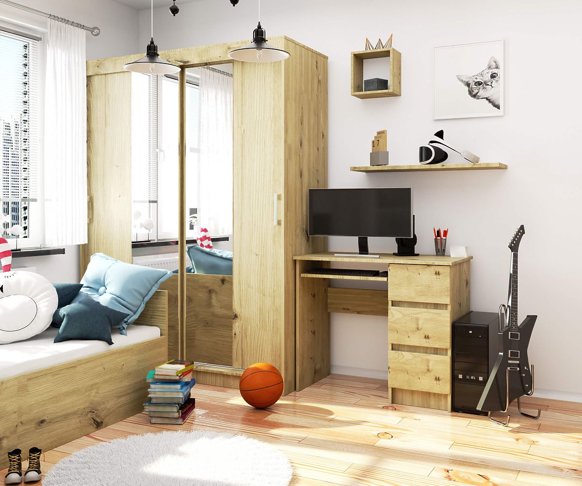 A-6 90 cm jobbos számítógépasztal olyan termék, amely ötvözi a funkcionalitást, a magas minőséget és az időtálló megjelenést. A termék szabadon kombinálható a kollekció más elemeivel. A tölgy artisan színű számítógépasztalok remekül illeszkednek mind a klasszikus, mind a modern berendezésű belső terekhez. Könnyen használható és karbantartható, kétségtelenül megfelel azoknak az ügyfeleknek az elvárásainak, akik a kiválasztott bútortól praktikus használatot, egyszerűséget és eleganciát várnak el.