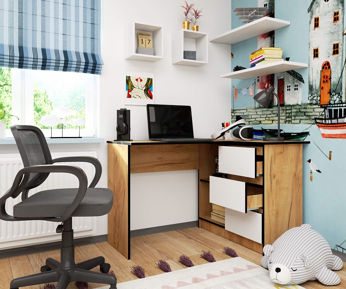 A látható élek ABS szegéllyel vannak ellátva, amely fokozottan ellenáll a sérüléseknek. Sarok íróasztal.