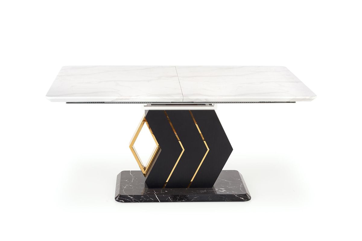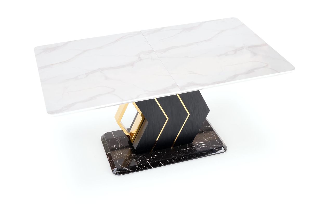 Lukafurniture.hu » Étkező és konyha / Étkező asztalok / VINCENZO kihúzható asztal, lap: fehér márvány, láb: fekete/arany (3p=1db)