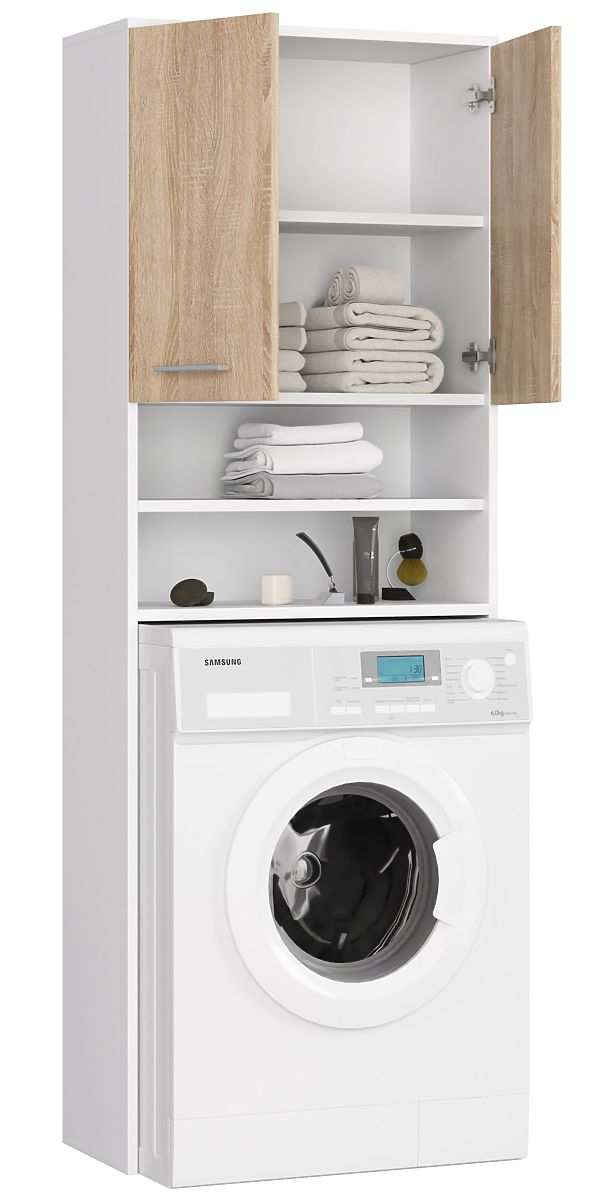 Lukafurniture.hu » Fürdőszoba és WC / Fürdőszobák szekrények / FIN FÜRDŐSZOBAI POLC 2D MOSÓGÉP FEHÉR / SONOMA