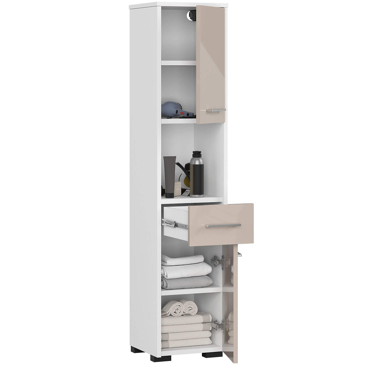 Lukafurniture.hu » Fürdőszoba és WC / Fürdőszobák szekrények / FÜRDŐSZOBAI POLC FIN OSZLOP 30 2D 1SZ 1W 140cm PK CAPPUCCINO FÉNYES