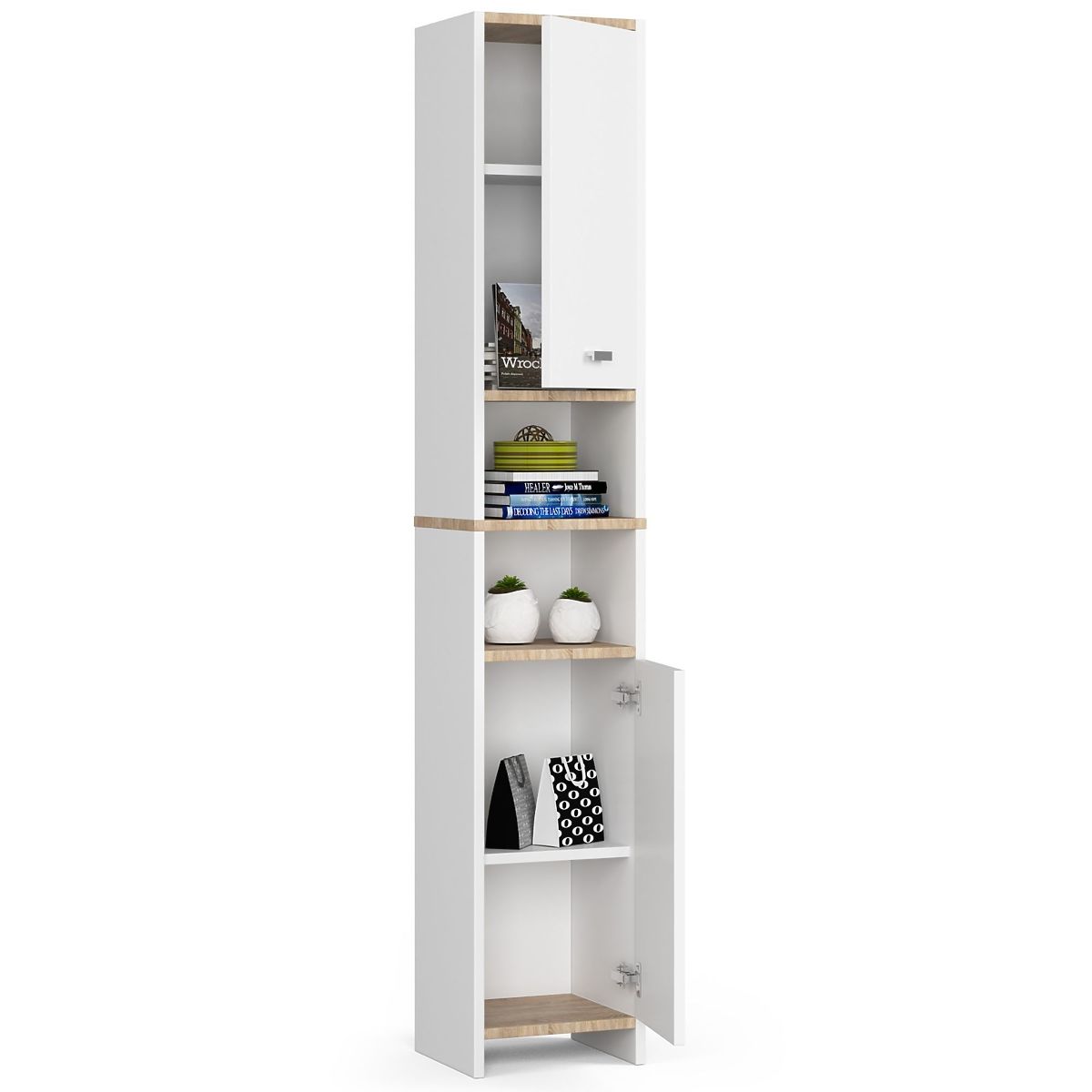 Kopásálló fehér fürdőszobai polc, 4 polccal és 2 ajtóval. .. többet