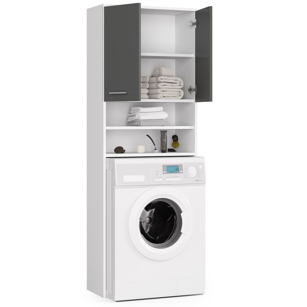 Mosógép fölé helyezhető fehér-grafit szürke fürdőszobai szekrény. .. többet