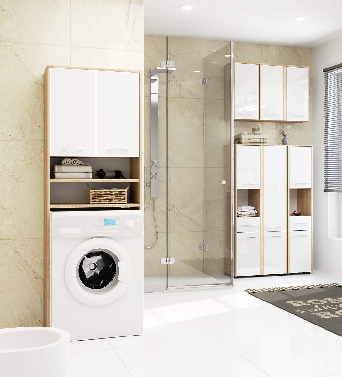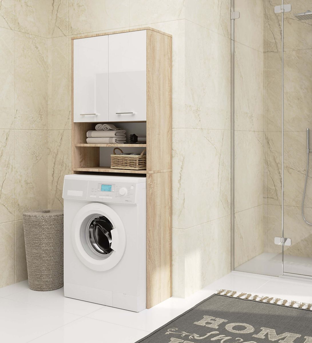 Lukafurniture.hu » Fürdőszoba és WC / Fürdőszobák szekrények / FÜRDŐSZOBAI POLC MOSÓGÉP FÖLÉ SONOMA TÖLGY / FEHÉR FÉNYES