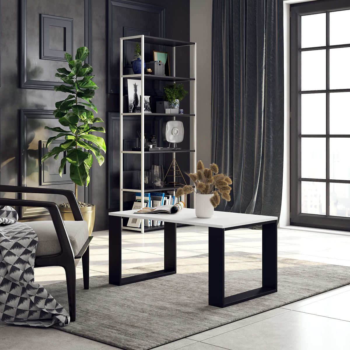 Fehér Nox asztal fekete lábakkal, modern és funkcionális. .. többet