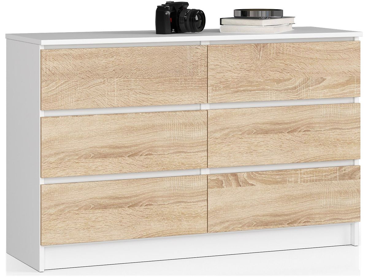 Kopásálló laminált komód 6 fiókkal, fehér és Sonoma tölgy színben. .. többet
