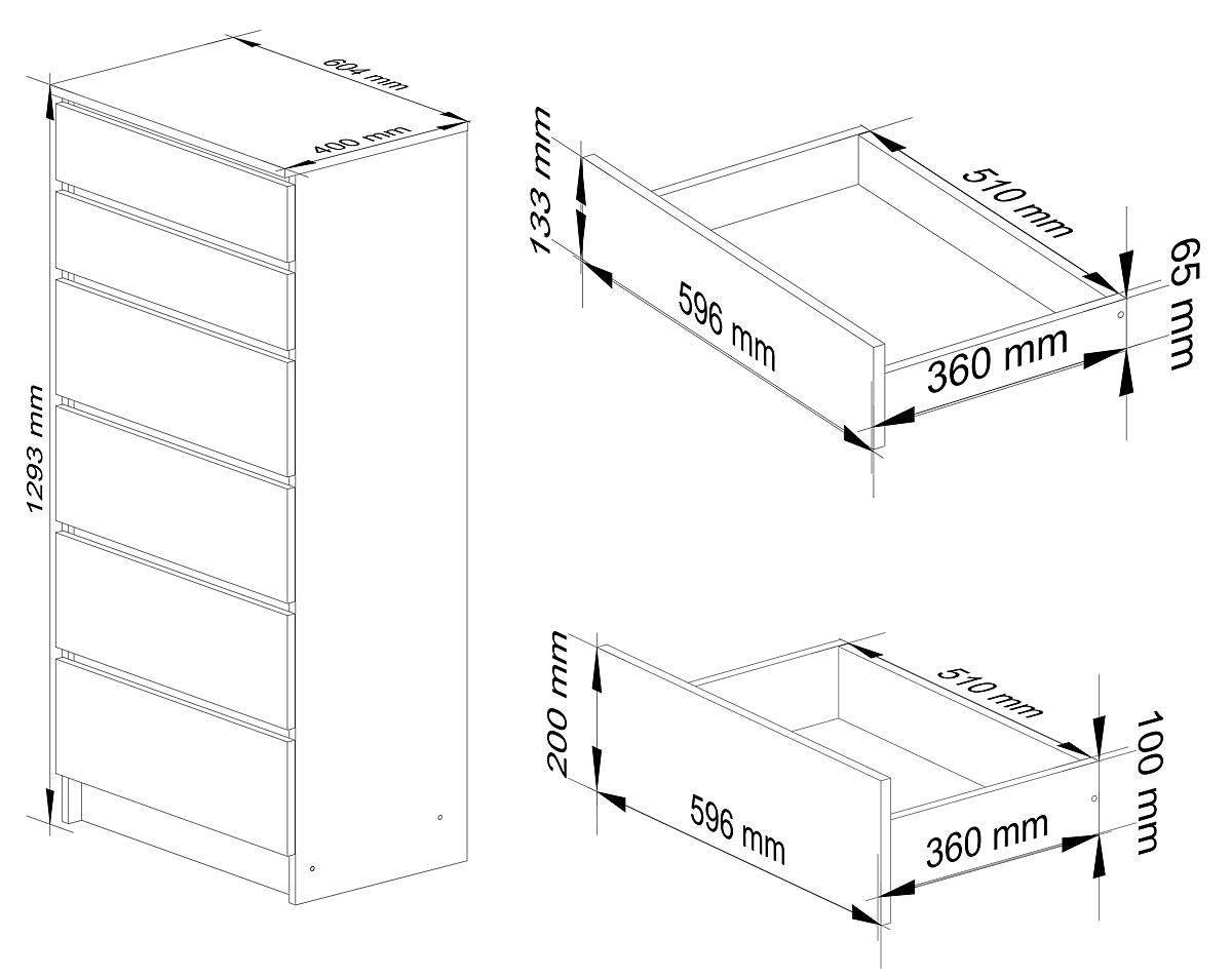 KOMÓD K60 6SZ MAGASFÉNY Kiváló minőségű, 16 mm vastag, kopásálló laminált lapból készült.