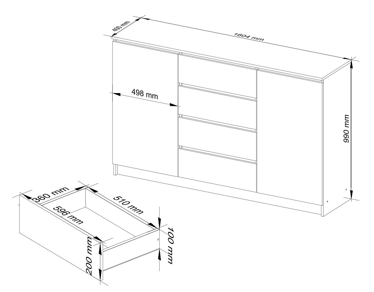 KOMÓD K160 2 AJTÓ 4 FIÓK Nagy és tágas komód modern dizájnnal.