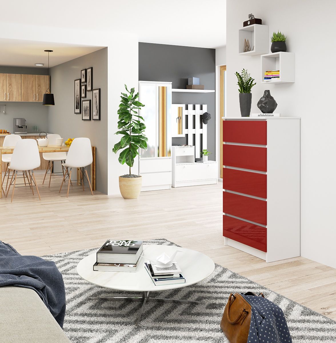 KOMÓD K60 5 FIÓKOS MAGAS FÉNY Kiváló minőségű, 16 mm-es laminált lapból készült, kopásálló.