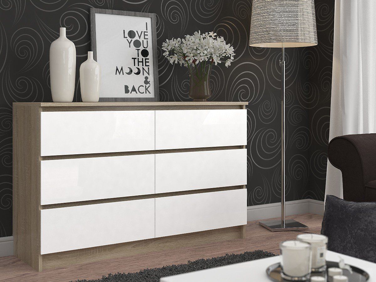 Stílusos komód 6 fiókkal, tölgy Sonoma és fehér színben. .. többet