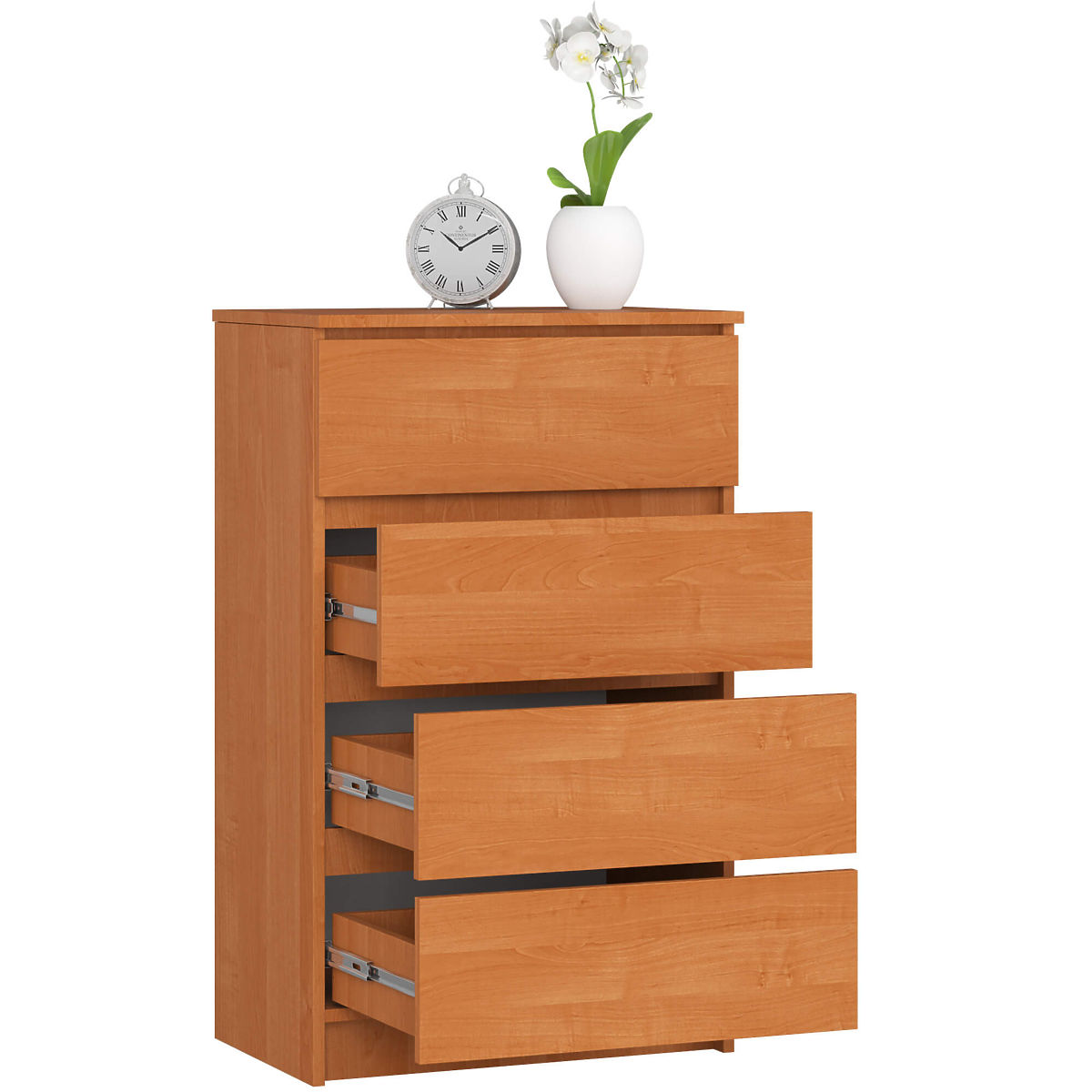 Négy fiókos, éger színű komód, kopásálló laminált lapból. .. többet