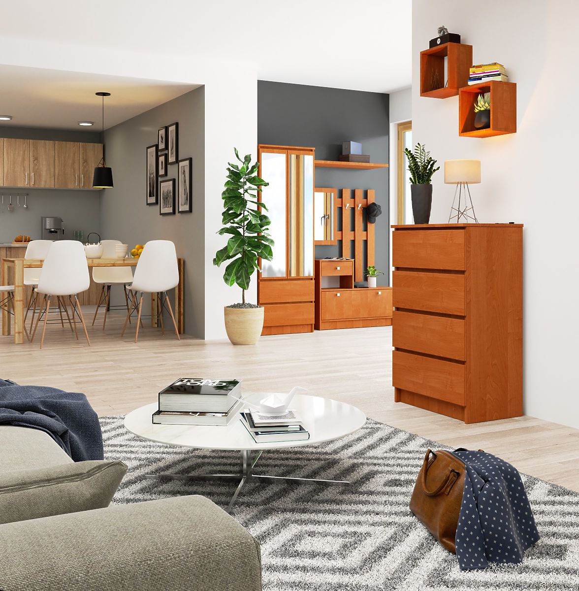 Egyszerű, mégis nagyon hatásos K60 komód időtálló éger színben, amelyet nem lehet figyelmen kívül hagyni. A masszívan megmunkált bútor négy fiókkal rendelkezik, valamint egy strapabíró mechanizmussal, amely tökéletesen illeszkedik a fiókok hosszához és súlyához. A komód úgy készült, hogy megfeleljen a legigényesebb vásárlók szükségleteinek és elvárásainak is. Számos lakóhelyiségben, valamint irodai terekben is hasznos lehet, ahol lehetővé teszi a szükséges tárgyak tárolását. Érdemes megemlíteni a kedvező ár-érték arányt. Az internetes áruházunkban kapható komódok nagy népszerűségnek örvendenek azok körében, akik számára a funkcionalitás a prioritás. A bemutatott bútorhoz könnyen választhatók további, stílusban illeszkedő elemek, így harmonikus egységet alkotva.