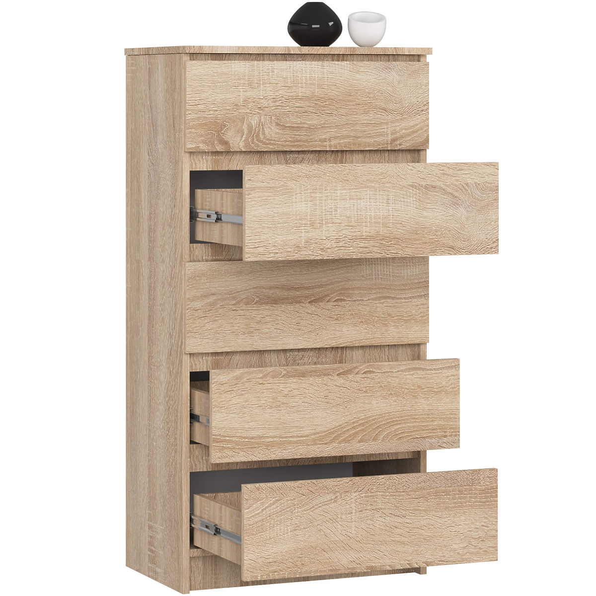 Tölgy Sonoma színű komód öt tágas fiókkal. .. többet