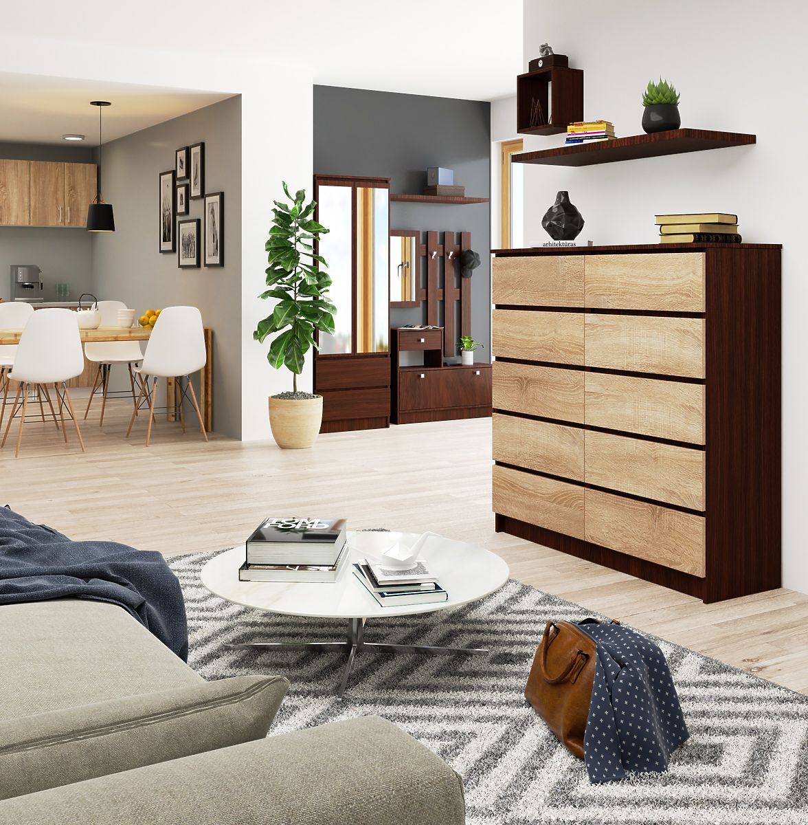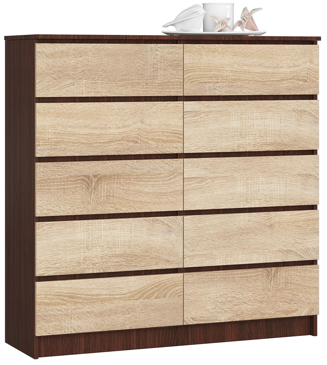 Tízfiókos, wenge és sonoma színű laminált komód. .. többet