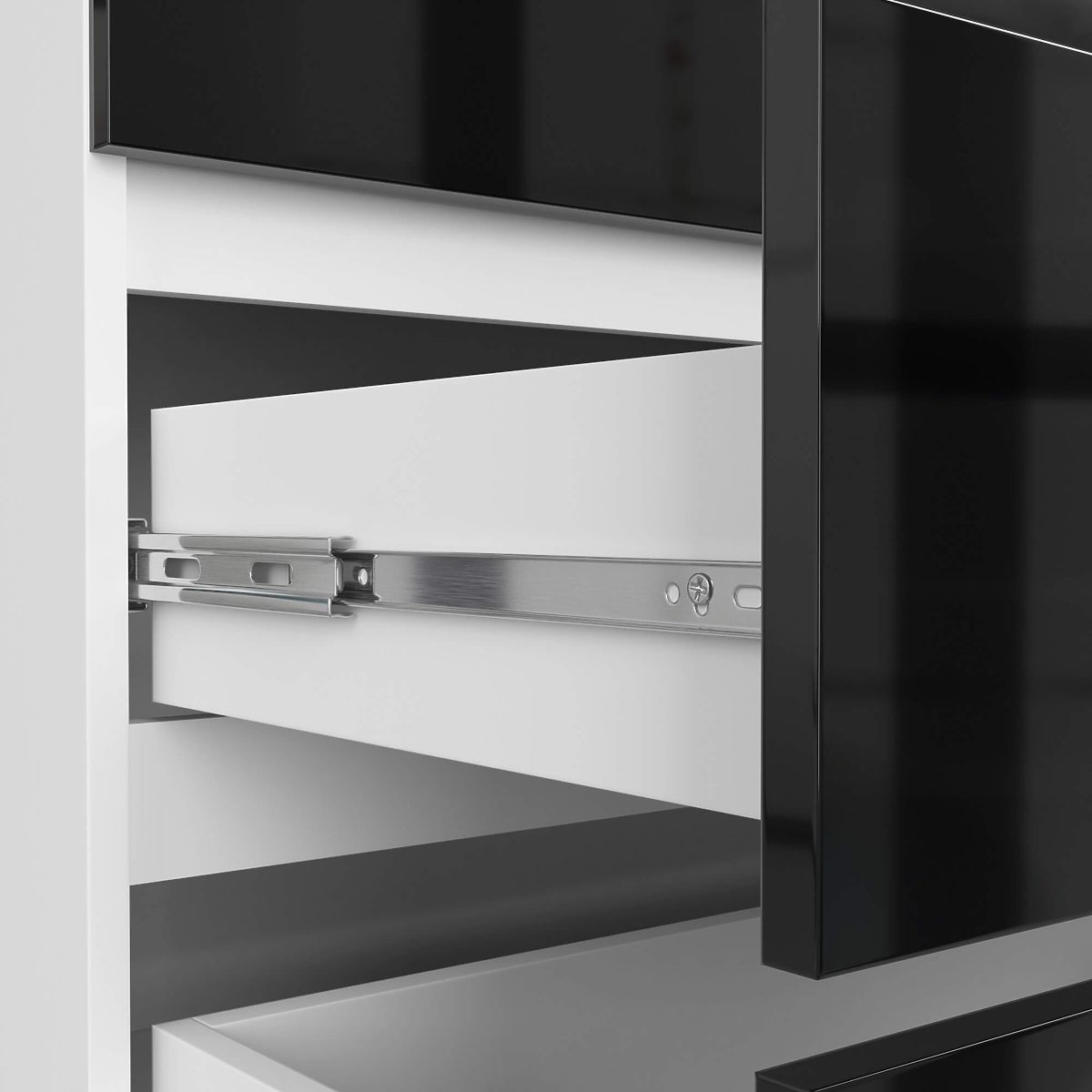 - A fiókok fém golyóscsapágyas síneken mozognak