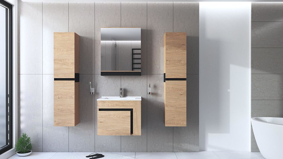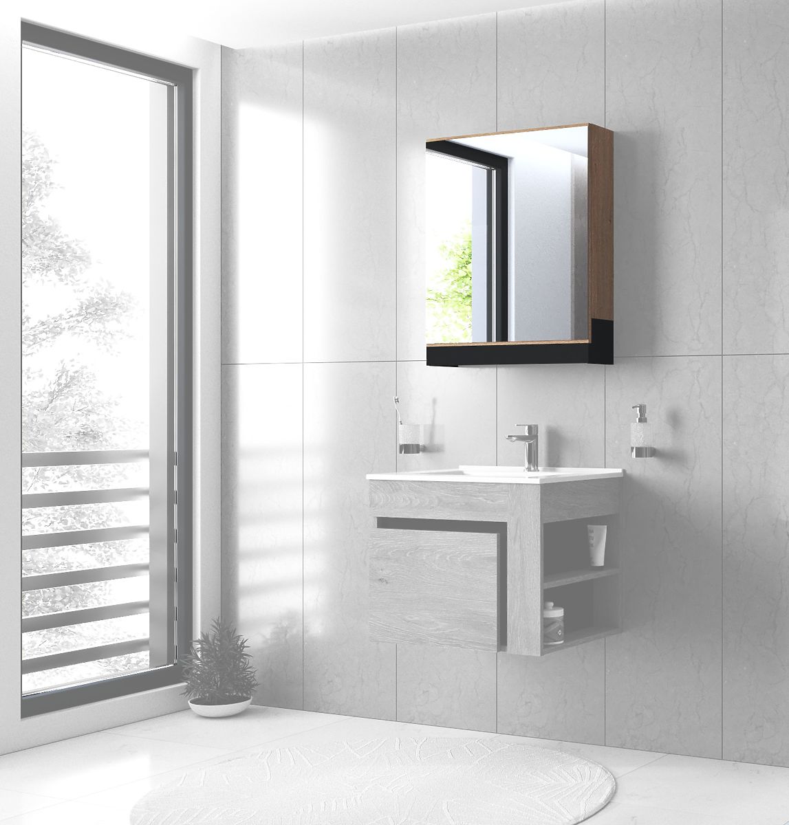 Lukafurniture.hu » Fürdőszoba és WC / Fürdőszobák szekrények / DUESA Tükrös szekrény 60/1D arany tölgy (1p=1db)