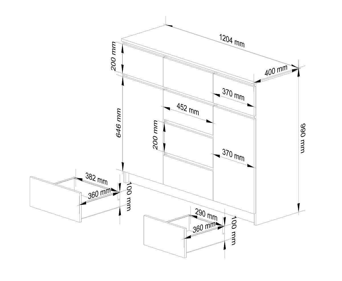 - A komód kiváló minőségű, 16 mm vastag kopásálló laminált lapból készült