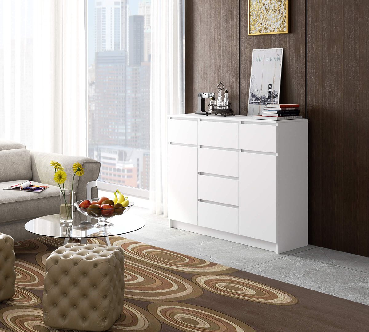 Fehér, 16 mm vastag laminált komód, 6 fiókkal és 2 ajtóval. .. többet
