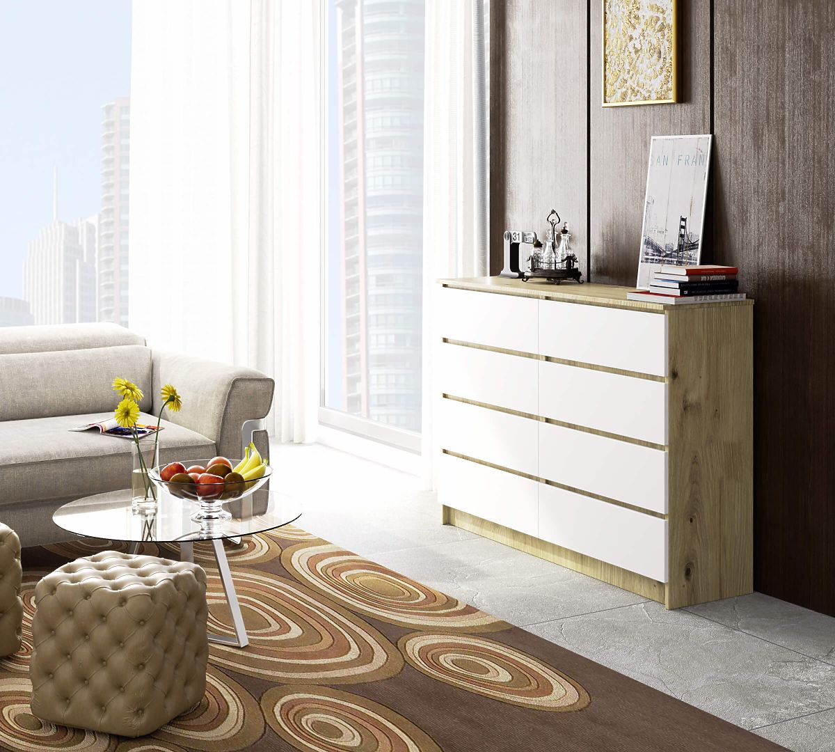 8 fiókos, Artisan Tölgy és Fehér színű komód. .. többet