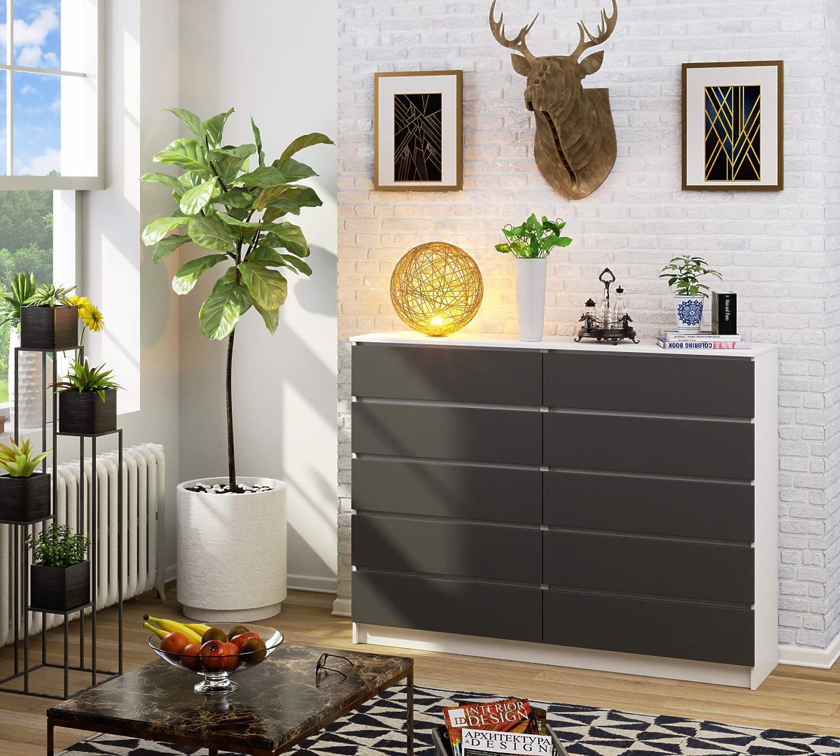 10 fiókos komód grafitszürke MDF előlapokkal. .. többet