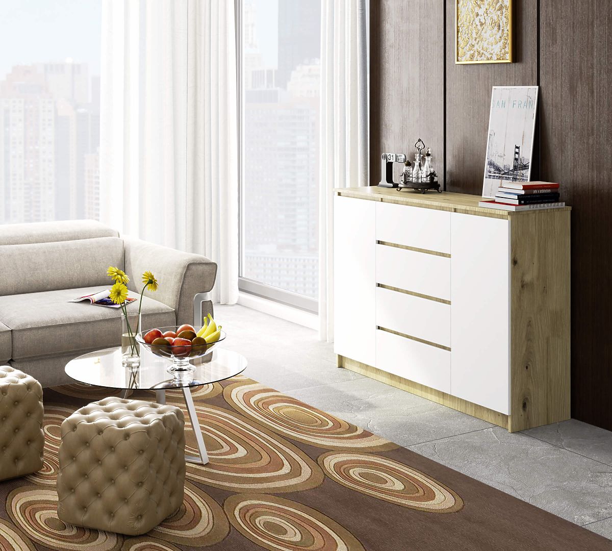 Kétajtós, négyfiókos komód Artisan Tölgy és Fehér színben. .. többet