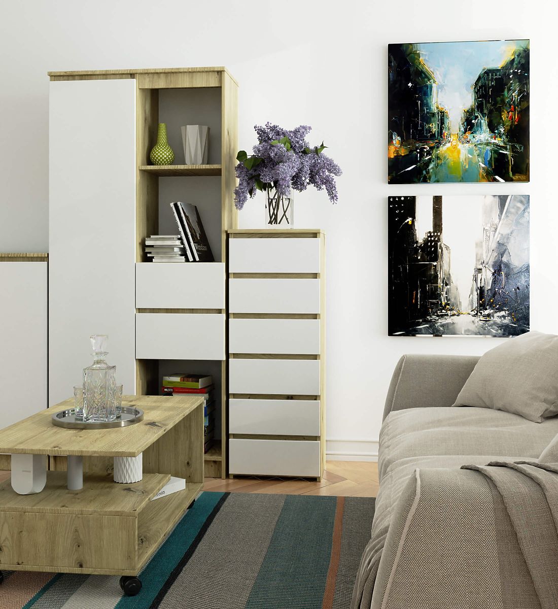 A komódok népszerű bútordarabok, amelyeket az ágy mellé helyeznek. A tetején gyakran található lámpa, míg belül olyan tárgyak, amelyek megkönnyítik a pihenést és az alvást. Azok, akik elegáns komódot keresnek, figyelmet kell fordítaniuk a CL6 40 cm-es komódra artisan tölgy színben, fehér frontokkal. Gyönyörűen mutat minden hálószobában. Gyerekszobába is elhelyezhető.