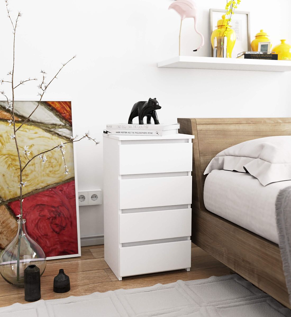 A komódok népszerű bútordarabok, amelyeket az ágy mellé helyeznek. A tetején általában egy lámpa található, míg belül olyan tárgyak vannak, amelyek megkönnyítik a pihenést és az alvást. Azok, akik elegáns komódot keresnek, figyelmet fordíthatnak a 40 cm-es fehér CL4 komódra. Gyönyörűen mutat minden hálószobában. Gyerekszobába is elhelyezhető.