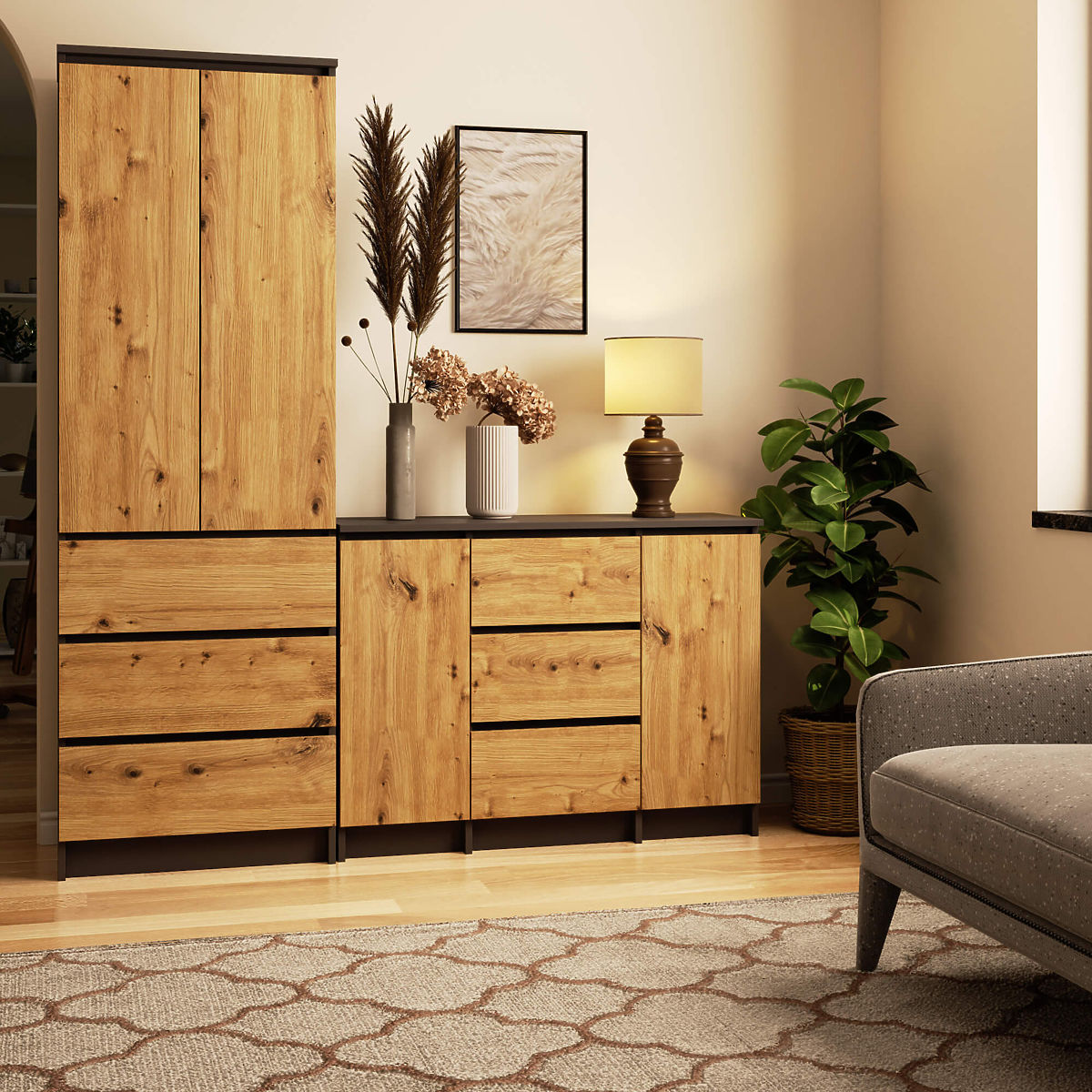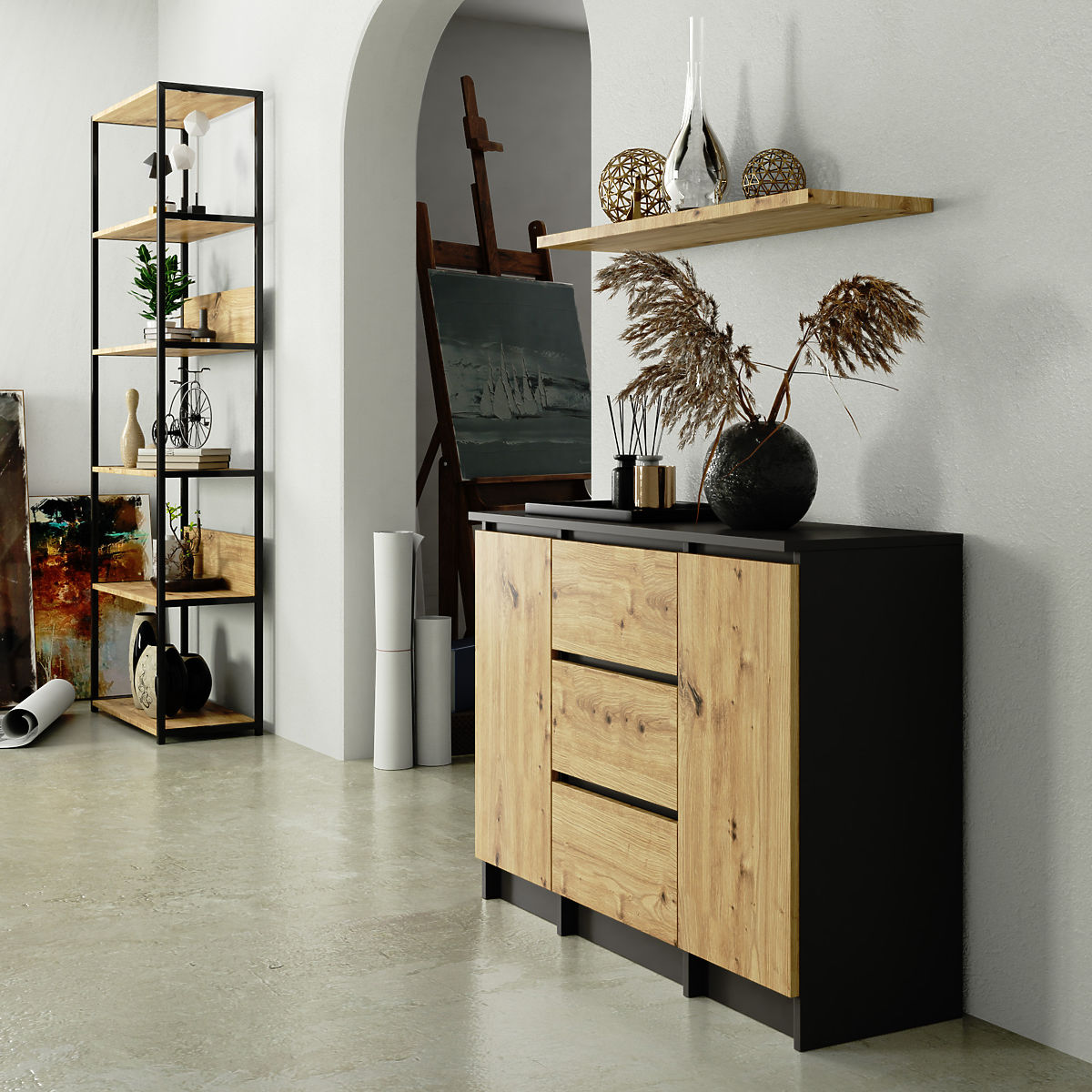 Kopásálló laminált komód grafit szürke és artisan tölgy színben. .. többet