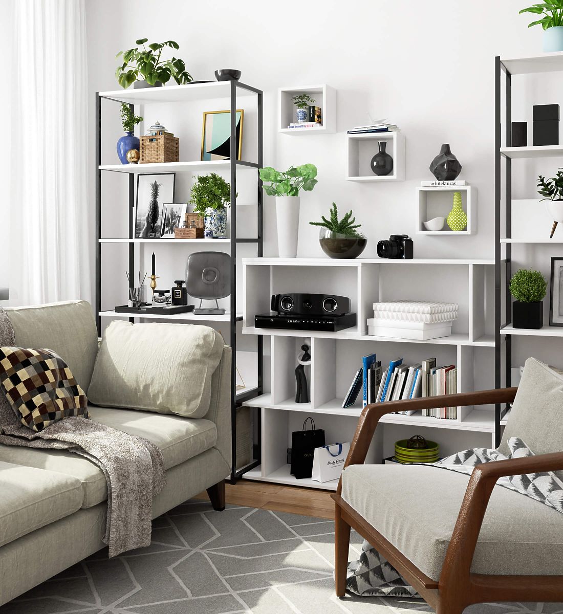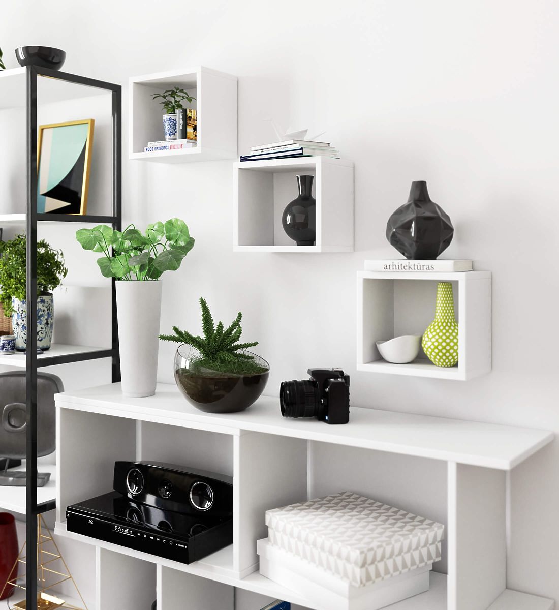 Fehér fali polcok, praktikus és esztétikus tárolási megoldás. .. többet