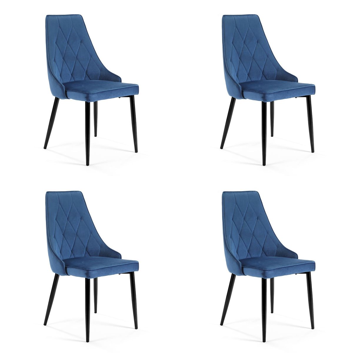 Bársony kárpitozású, kék székek fekete fém lábakkal. .. többet