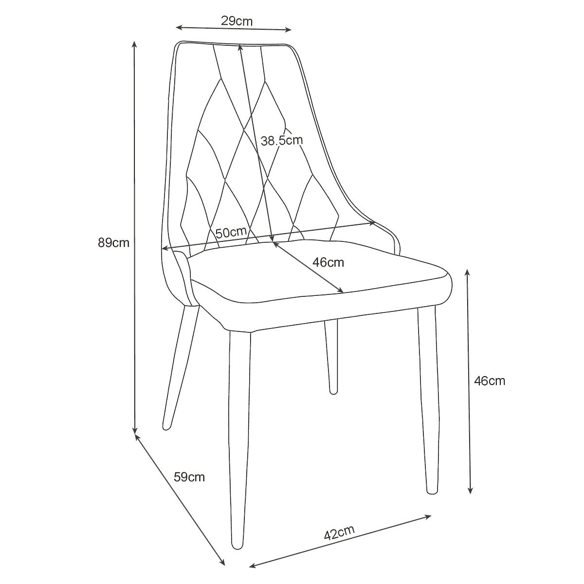 A modern design és a jelenlegi trendek megmutatják, milyen csodálatos és praktikus anyag a bársony. Ezt a szék sorozatot modern és stílusos belső terek kiegészítőjeként ajánljuk. Az SJ.054 típusú szék fekete színű fém lábakkal rendelkezik. Ezek a lábak illenek mind a klasszikus, mind a modern elrendezésekhez. A bársony kárpitozás körülöleli az ülést és a háttámlát, így a szék kellemes tapintású és nem okoz kényelmetlenséget a nyári napokon. A kárpitozás során alkalmazott steppelés még elegánsabb megjelenést és időtálló stílust kölcsönöz. A székek készletekben kaphatók - 4 darab egy csomagban.
