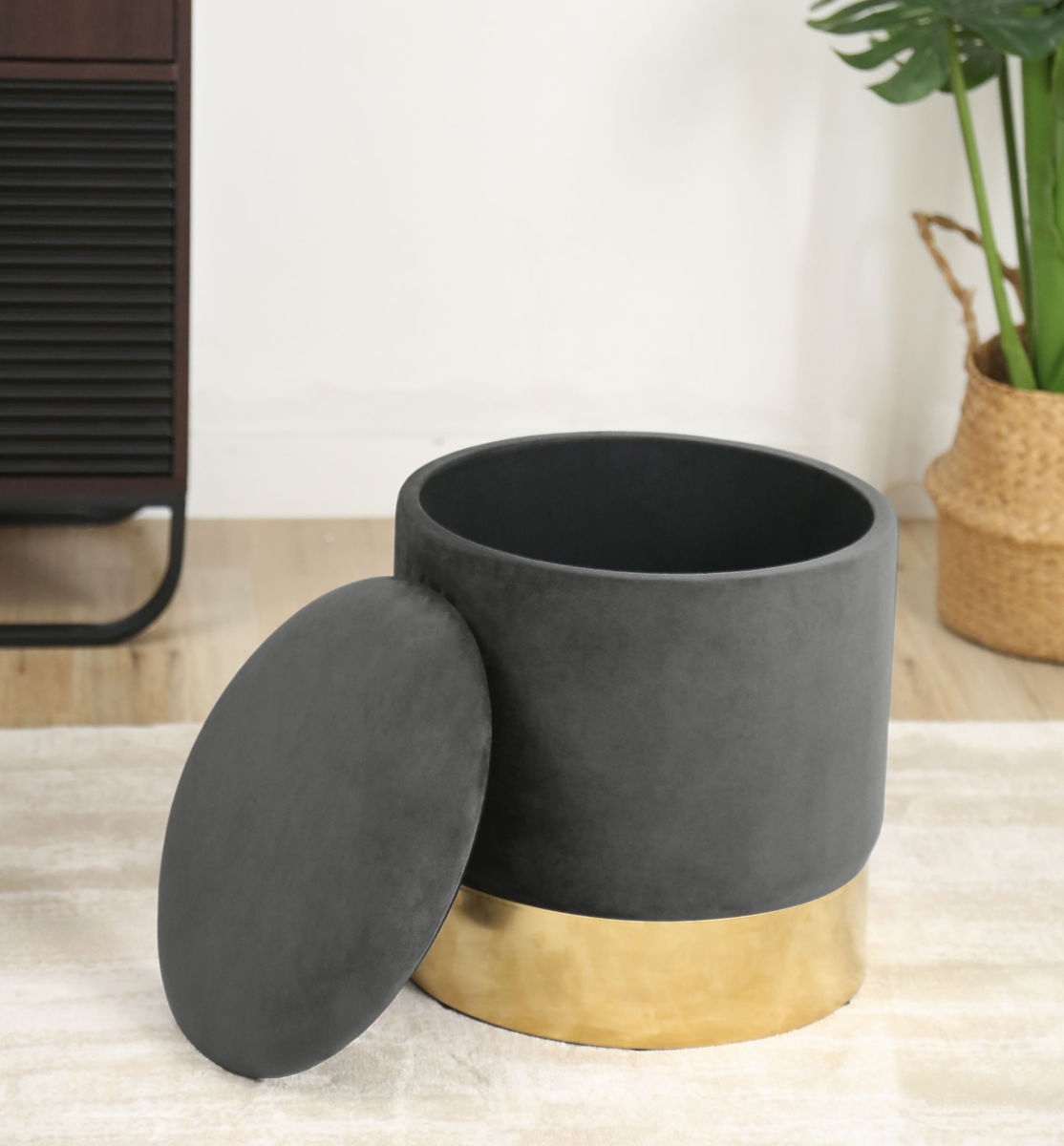 Grafitszürke puff aranyszínű fém alapon, tárolóval. .. többet