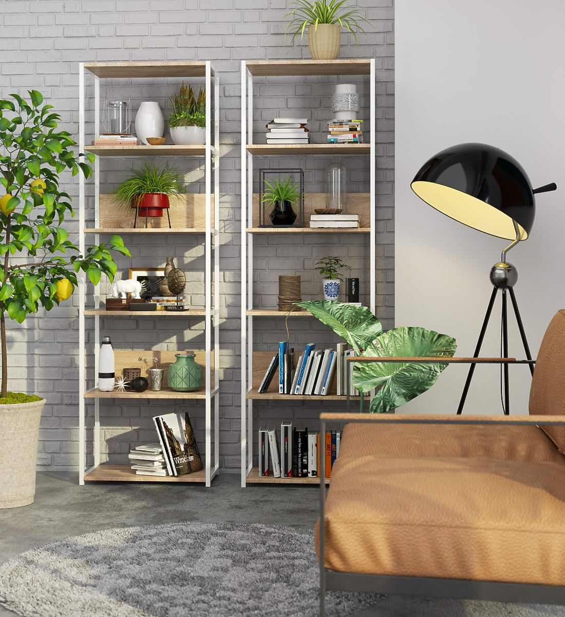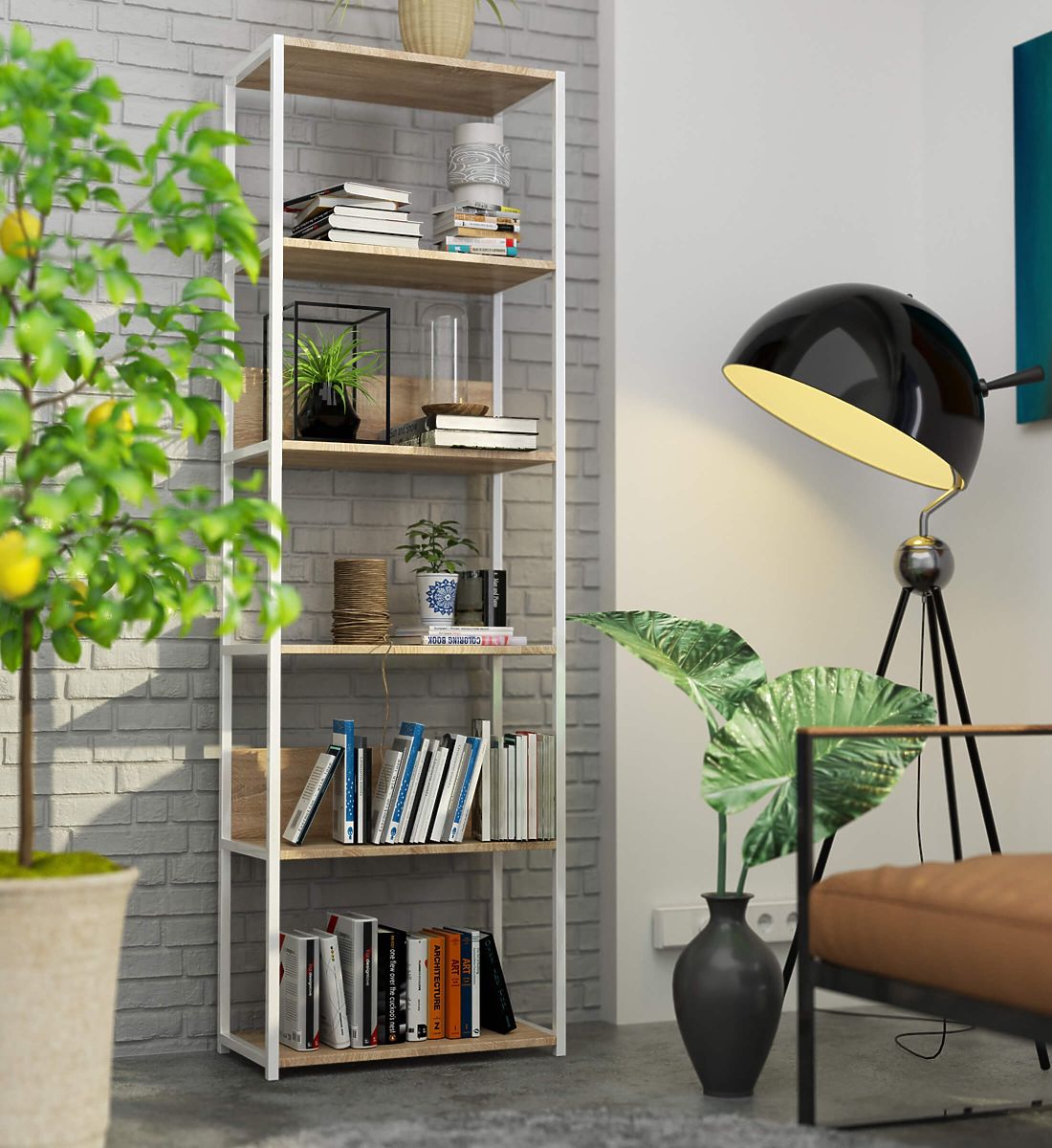 A fém loft polc praktikus és modern bútor, amely illik mind a nappaliba, mind az irodába. A polc fehér fém vázzal és 6 sonoma tölgy színű polccal rendelkezik. A polcok 16 mm vastag laminált lapból készültek. Ez egy tartós és erős anyag, amely kiváló kopásállósággal rendelkezik. Az élek további ABS élzárással vannak védve, így a bútor jól néz ki még nagyon intenzív mindennapi használat mellett is. A polc 6 polccal van felszerelve, amelyeken elhelyezheti a kiállítani vagy kéznél tartani kívánt tárgyakat. Összességében nagyon stílusos és modern hatást kelt.