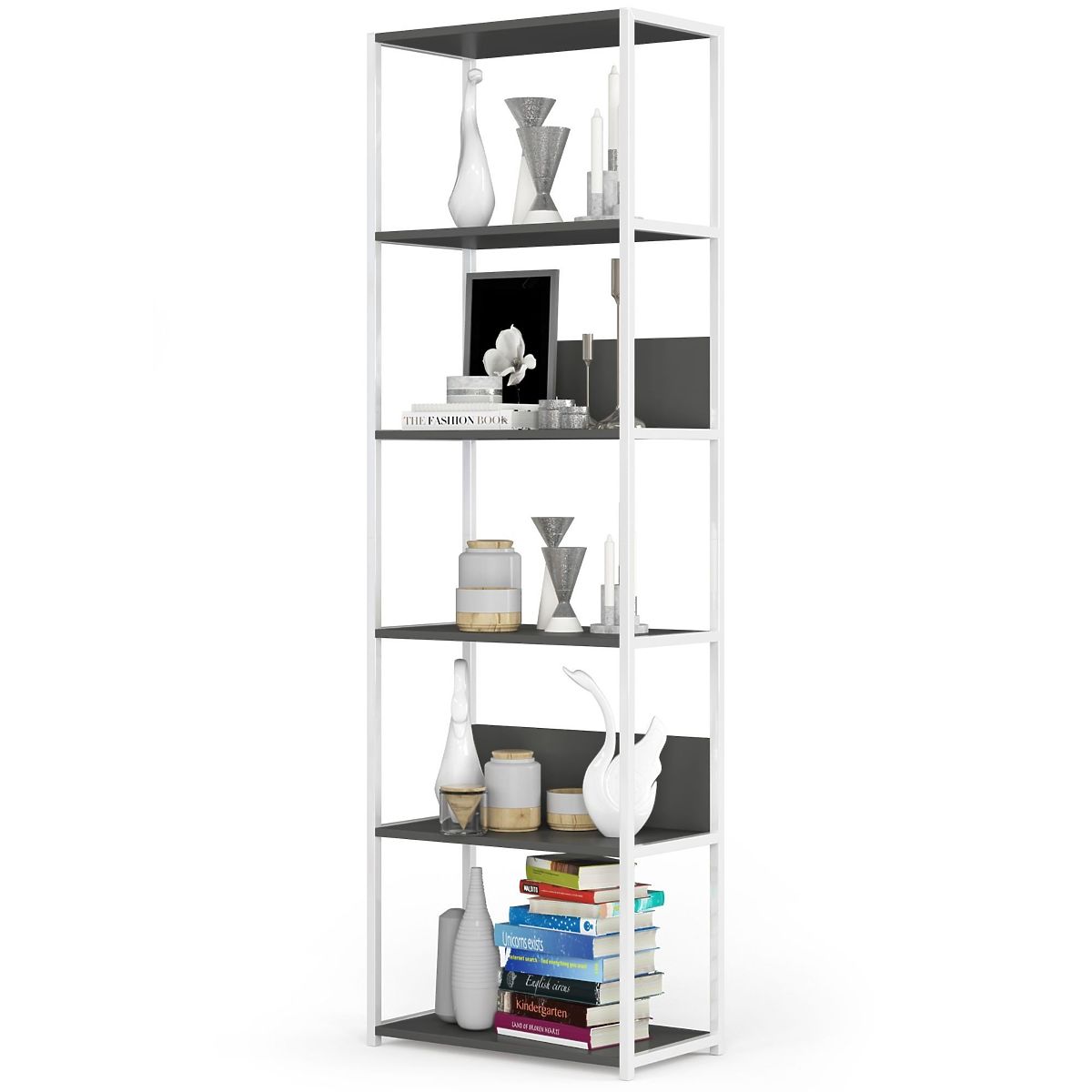 Modern fém loft polc 6 szürke polccal és fehér vázzal. .. többet