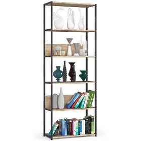 A fém loft polc praktikus és modern bútor, amely alkalmas mind a nappaliba, mind az irodába. Fekete fém vázzal és 6 sonoma tölgy színű polccal rendelkezik. A polcok 16 mm vastag laminált lemezből készültek, ami tartós és erős anyag, magas kopásállósággal. Az élek ABS szegéllyel vannak védve, így a bútor még intenzív mindennapi használat mellett is jól néz ki. A polc 6 polccal van felszerelve, amelyeken elhelyezheti a kiállítani vagy kéznél tartani kívánt tárgyakat. Összességében nagyon stílusos és modern megjelenésű.