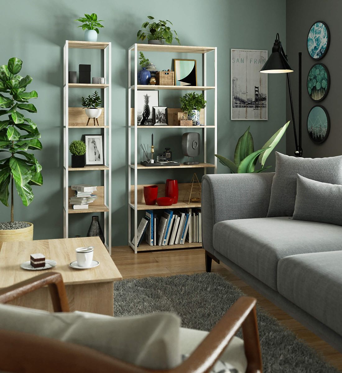 A fém loft polc praktikus és modern bútor, amely illik mind a nappaliba, mind az irodába. A polc fehér fém vázzal és 6 sonoma tölgy színű polccal rendelkezik. A polcok 16 mm vastag laminált lapból készültek. Ez egy tartós és ellenálló anyag, amely magas kopásállósággal rendelkezik. Az élek ABS szegéllyel vannak védve, így a bútor még intenzív mindennapi használat mellett is jól néz ki. A polc 6 polccal van felszerelve, amelyekre elhelyezhetjük a kiállítani vagy kéznél tartani kívánt tárgyakat. Összességében nagyon stílusos és modern megjelenésű.