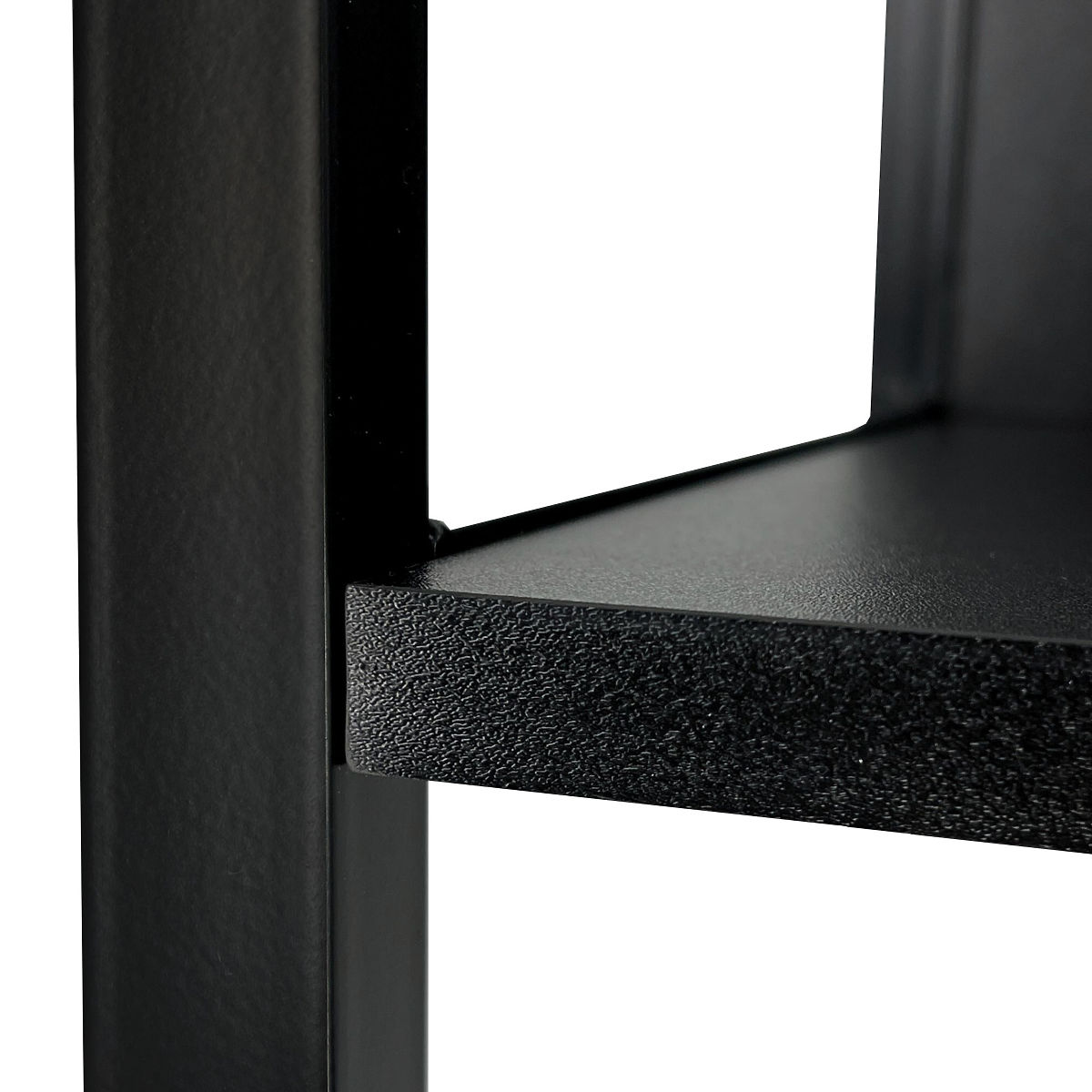 A fém ipari polc praktikus és modern bútor, amely alkalmas mind a nappaliba, mind az irodába. A váz fekete színű. A polcok 16 mm vastag, fekete laminált lapból készültek. Tartós és ellenálló anyag, amely magas kopásállósággal rendelkezik. Az élek ABS éllel védettek, így a bútor még intenzív mindennapi használat mellett is jól fog kinézni. Az összkép nagyon modern.